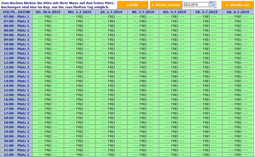 • freie Auswahl zwischen einem und mehreren Plätzen (Courts)